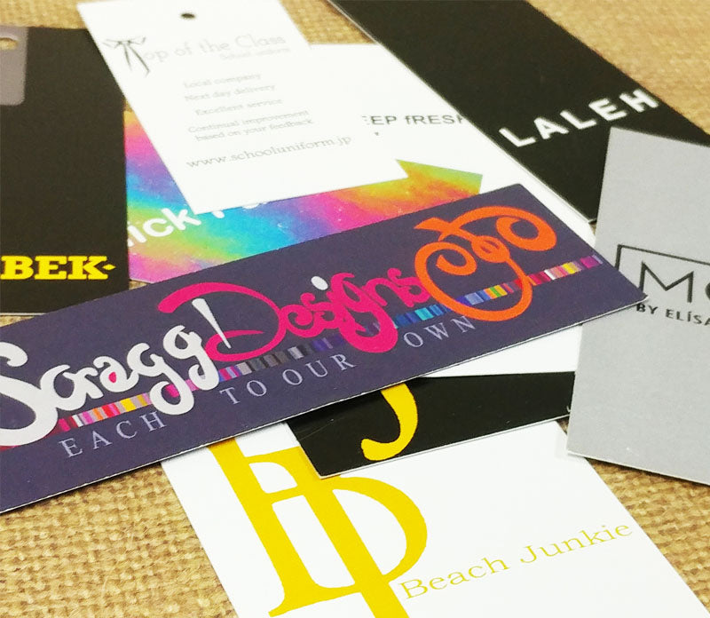 Hang Tags or "Swing Tickets" are often the first piece of brand identity your customers will see. We supply a variety of materials and styles to choose from, and a low minimum order.